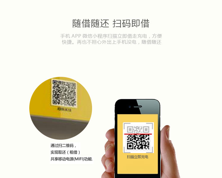 共享充電寶是指企業提供的充電租賃設備,用戶使用移動設備掃描設備屏幕上的二維碼交付押金,即可租借一個充電寶,充電寶成功歸還后,押金可隨時提現并退回賬戶??梢越鉀Q用戶在戶外手機沒電的問題,讓你不錯過一個重要的電話、一個重要的信息。