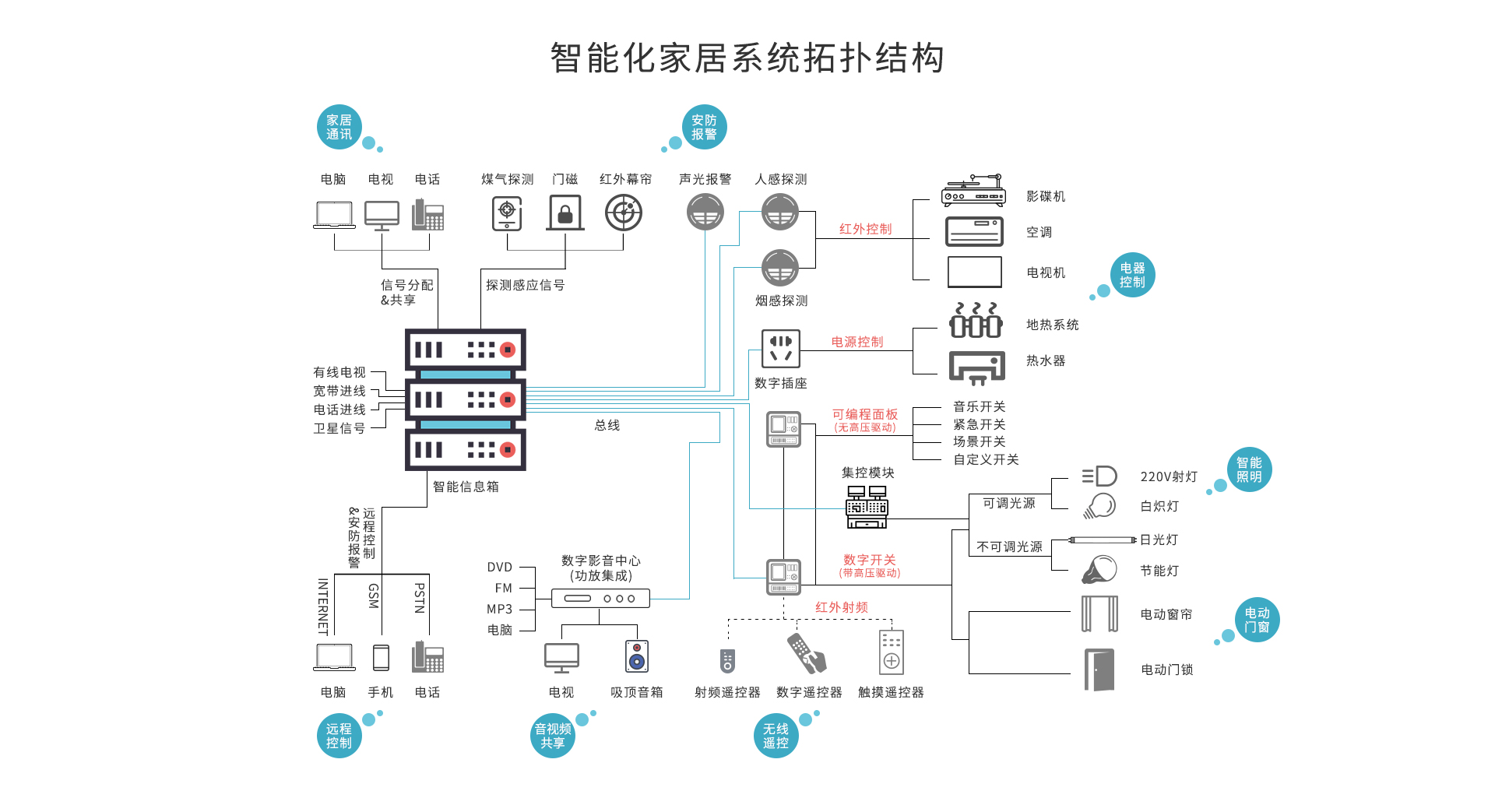 此智能家居控制系統(tǒng)解決方案,開創(chuàng)性地將家居監(jiān)控、娛樂影音、家居安防、家居控制、背景音樂控制、空調(diào)控制、可視對講、集中管理、遙控器控制、遠程控制、手機報警等智能系統(tǒng)融為一體。